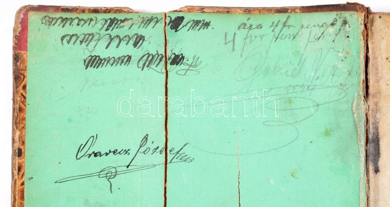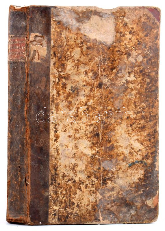Korabeli, félbőr kötésben, címlap nélkül, első lapon ceruzás beírás, Utolsó levélen lyuk, néhány lap foltos.