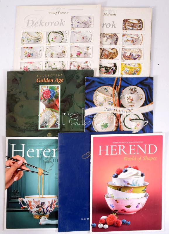 7 db Herendi porcelánokkal foglakozó mintakönyv, dekor könyv, formakönyv, történet, stb, mintalapokkal a klf dekorokhoz kb 20 db mintalap.