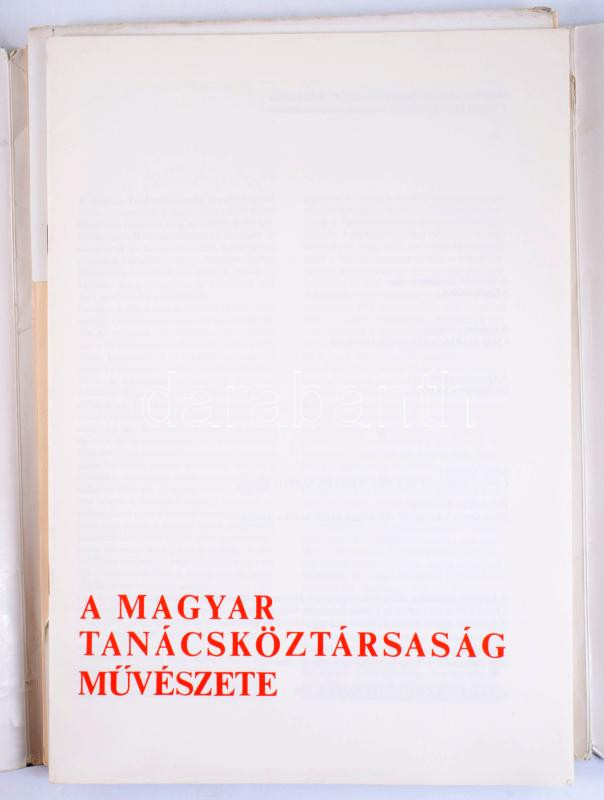 A Magyar Tanácsköztársaság művészete. Aradi Nóra bevezetÅ‘ tanulmányával. A képismertetÅ‘ket Ãrta: GyÅ‘rffy Sándor. A képeket vál. Cseh Mária, és Theisler György. Bp., 1979, KépzÅ‘művészeti Alap, 16 sztl. lev.+ 32 t. Teljes! KÃsérÅ‘füzettel. Benne Bortnyik Sándor, Vértes Marcell, Biró Mihály, Jeges ErnÅ‘, Pór Bertalan, Uitz Béla, Faragó Géza, Székely Andor, Földes Imre, Végh Gusztáv, Azary-Prihoda István, Berény Róbert, Nemes Lampérth József, Egry József és mások munkáinak reprodukcióival. Kiadói sérült , kopott papÃrmappában