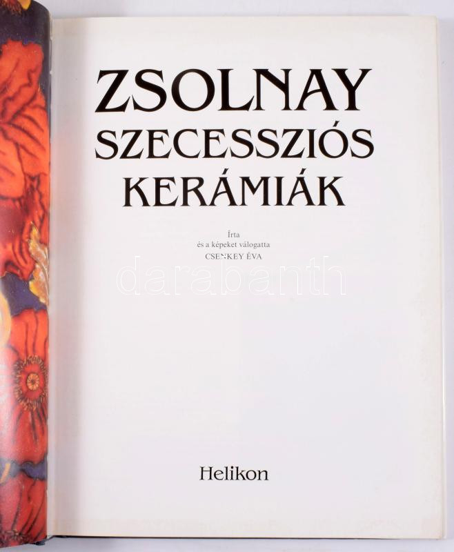 Csenkey Éva: Zsolnay szecessziós kerámiák. Bp., 1992, Helikon. Gazdag fekete-fehér és színes képanyaggal illusztrálva. Kiadói egészvászon-kötés, kiadói papír védőborítóban. gerincen pici szakadás