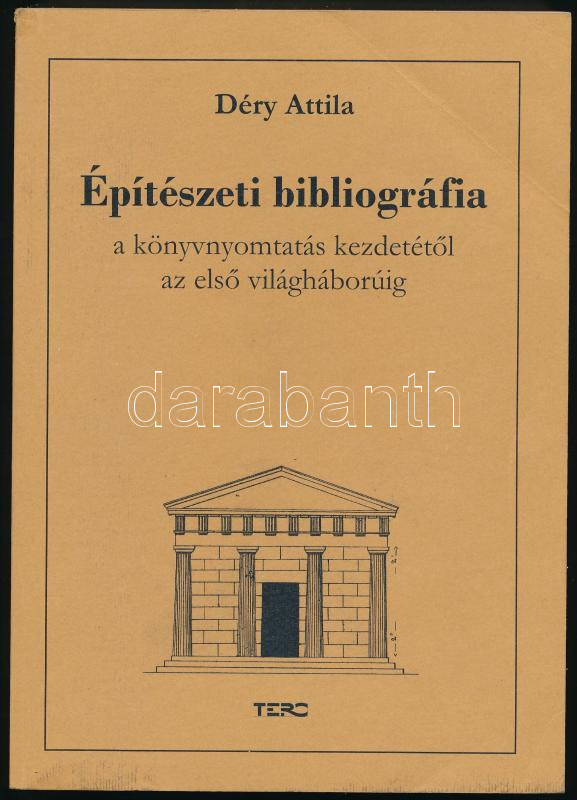 Déry Attila: Építészeti bibliográfia a könyvnyomtatás kezdetétől az első világháborúig. Bp., 2008, Terc, 226 p. Kiadói papírkötés.
