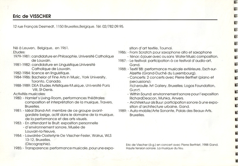 Bruxelles, 1989. Mediatine [ny. n.]. [52] p. + 1 melléklet (Bajkó Anikó installációjának részlete). Haránt alakú kötet. Egyetlen kiadás.
