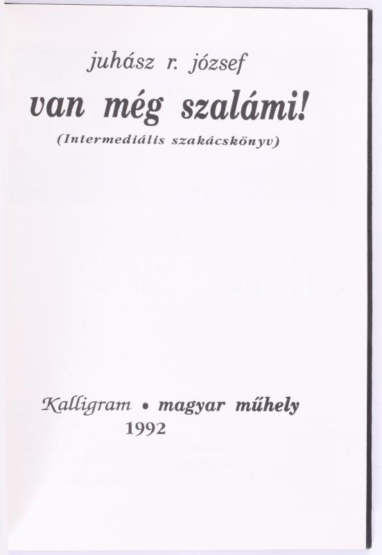 Juhász R. József: Van még szalámi! (intermediális szakácskönyv) - Kalligram Könyvkiadó, 1992. 120 p. egészvászon kötésben + Juhász R. József: Finish concerto for concrete. (16)p. Avantgarde művészeti alkotások.