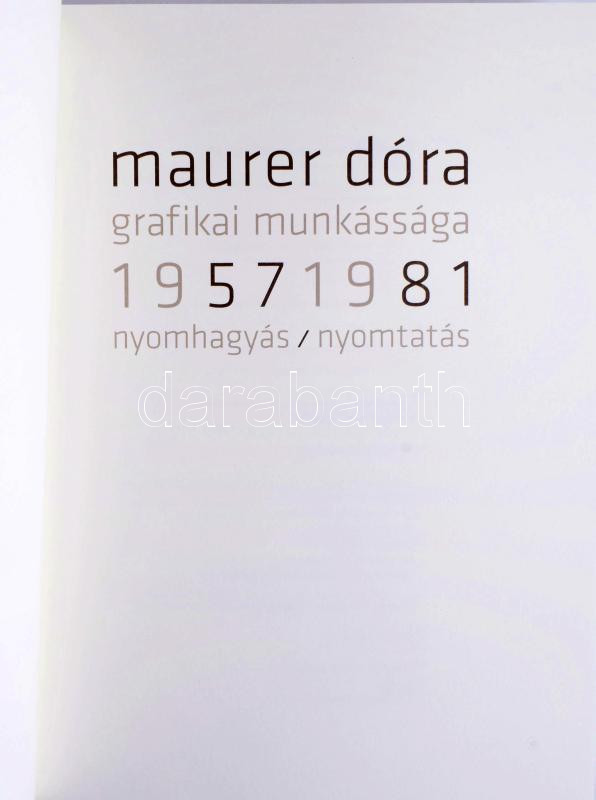 Maurer Dóra grafikai munkássága 1957-1981. Nyomhagyás / nyomtatás. Szerk.: Maurer Dóra, Révész Emese, Vintage Galéria. Bp., 2017, Magyar Képzőművészeti Egyetem. Gazdag képanyaggal illusztrált. Kiadói papírkötés.