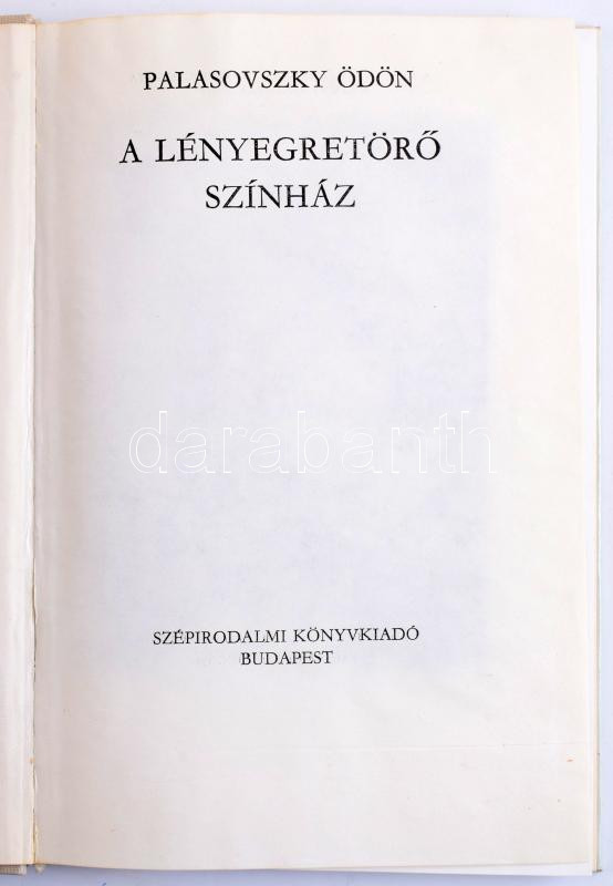 Palasovszky Ödön: A lényegretörő színház Szépirodalmi Könyvkiadó, 1980 Kiadói egészvászon kötés, papír védőborítóval