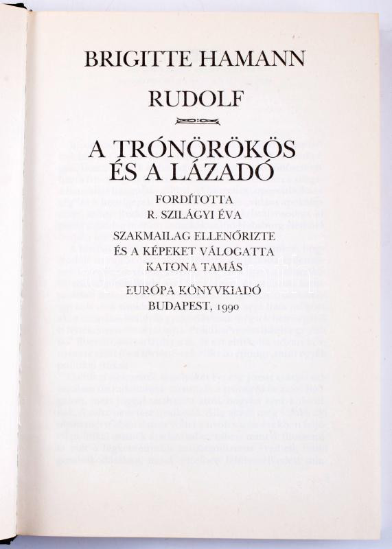 Brigitte Hamann: Rudolf. A trónörökös és a lázadó. Bp., 1990, Európa. Számos fekete-fehér fotóval illusztrált. Kiadói egészvászon-kötés, papír védőborítóval.