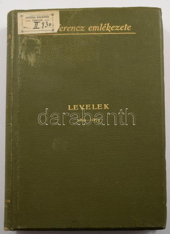Deák Ferencz emlékezete II. köt.: Levelek 1822-1875. Dr. Váczy János előszavával. Bp. 1890, Ráth Mór, (Prochaska Károly-ny.), 8 sztl. lev.+ IV+392 p. Kiadói aranyozott, zöld egészvászon-kötésben, márványozott lapélekkel, kopott borítókkal, a borítón címkével, régi intézményi bélyegzésekkel.
