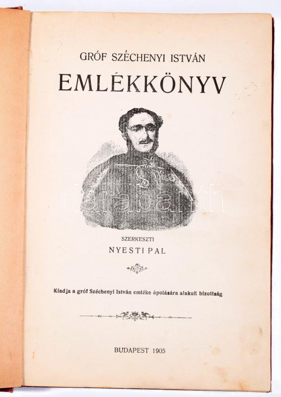 Gróf Széchenyi István emlékkönyv. Szerk.: Nyesti Pál. Bp., 1905, Gróf Széchenyi István Emléke Ápolására Alakult Bizottság (Otthon-ny.), 131p. Második kiadás. Kiadói egészvászon kötésben, kis kopással