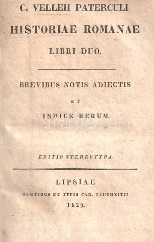 [Lipcse] Lipsiae, 1829. Sumtibus et typis Caroli Tauchnitii. [2] + 158 p.