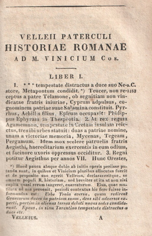 Historiae Romanae Libri duo. Brevibus notis adiectis et indice rerum.