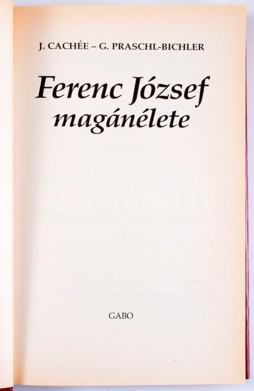 J. Cachée- G. Parschl-Bichler: Ferenc József magánélete. Fordította: Simon László. Királyi házak. Bp.,1998,Gabo. Fekete-fehér képanyaggal illusztrált. Kiadói kartonált papírkötés, kiadói papír védőborítóban.