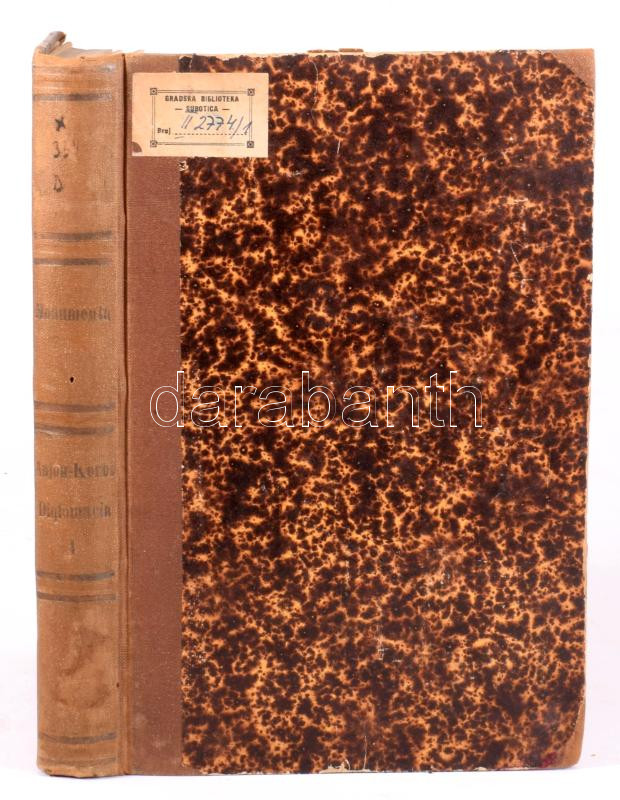 Országgyűlési emlékek. Bp., 1874, MTA, (Athenaeum-ny.), XXX+2+423 p. Korabeli átkötött félvászon-kötés, márványozott lapélekkel, kopott borítóval, a borítón címkével, régi intézményi bélyegzésekkel.