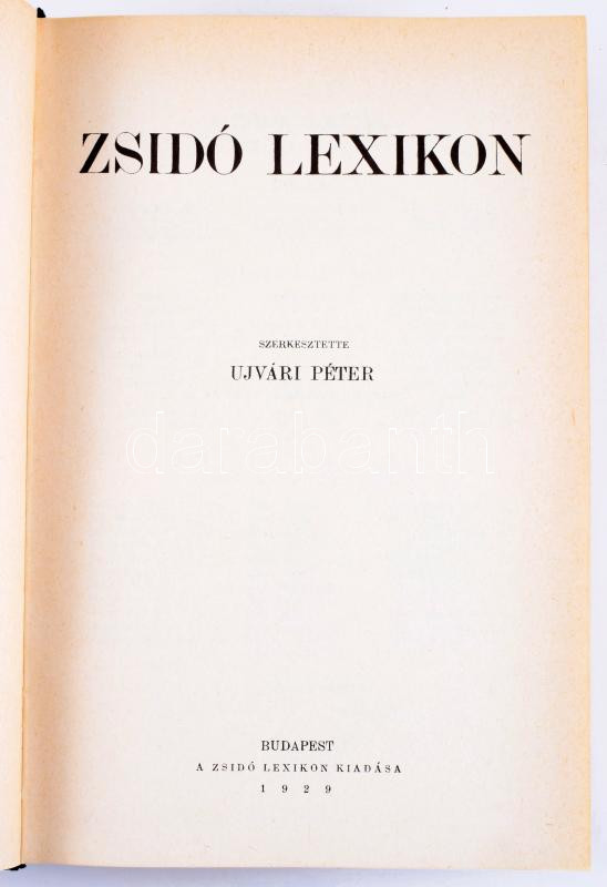 Magyar zsidó lexikon. Szerk.: Ujvári Péter. Bp., 1929, Zsidó Lexikon (Pallas-ny.), 8 sztl. lev.+ 1028 p. Kiadói aranyozott egészvászon-kötés, szép állapotban, tulajdonosi bejegyzéssel