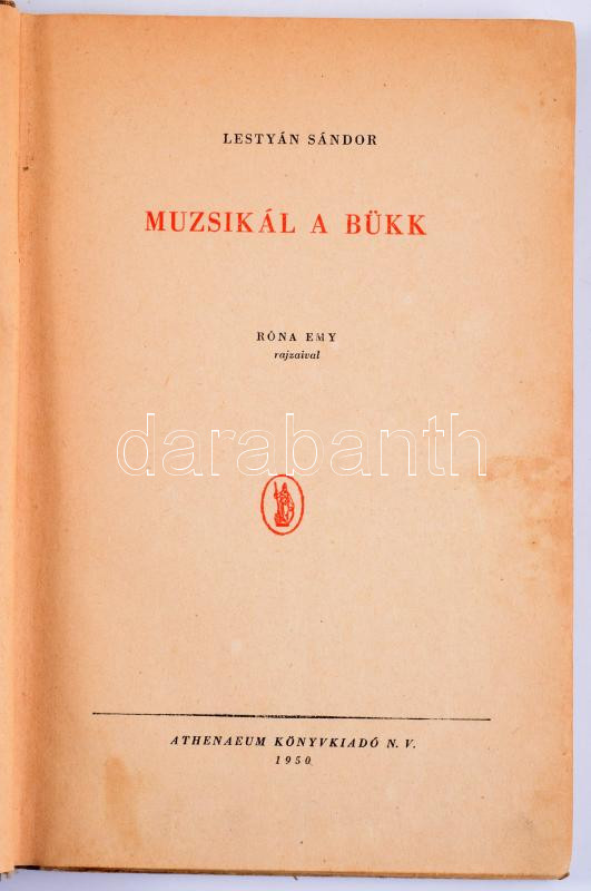 Lestyán Sándor: Muzsikál a Bükk. Róna Emy rajzaival. Bp.,1950, Athenaeum, 149+1 p. Kiadói illusztrált félvászon-kötés, kopott, foltos borítóval, laza fűzéssel, néhány kissé foltos lappal.