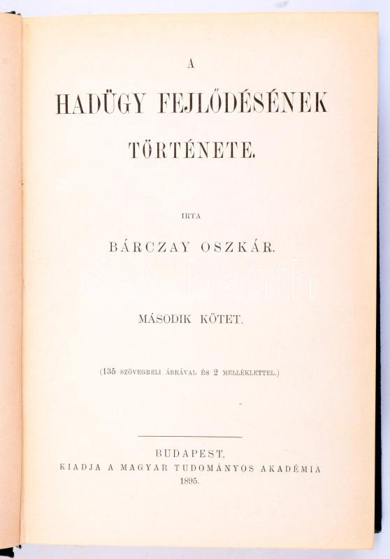 Bárczay Oszkár: A hadügy fejlődésének története. II. kötet. Bp., 1895, MTA. Kiadói egészvászon kötés, jó állapotban.