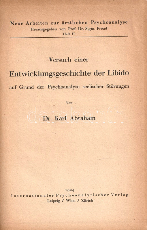 Versuch einer Entwicklungsgeschichte der Libido auf Grund der Psychoanalyse Seelischer Störungen.