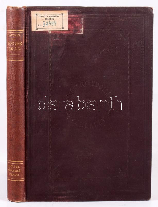 Darwin, G[eorge] H[oward]: A tengerjárás és rokontünemények naprendszerünkben. Fordította: Dr. Kövesligethy Radó. 52 rajzzal. Bp., 1904, K. M. Természettudományi Társulat, (Franklin-ny.), XV+308 p. Kiadói aranyozott egészvászon kötés, márványozott lapélekkel, kopott borítókkal, a borítón címkével, régi intézményi bélyegzésekkel.