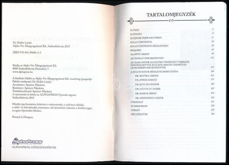 Hollós László: Világhírű Magyar Állatorvos Professzorok. A Kulcsi Hatok emlékkönyve. Dokumentumgyűjtemény. Székesfehérvár, 2015, Alpha-Vet, 272+[2] p. Kiadói papírkötés.