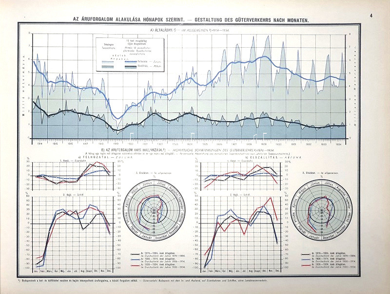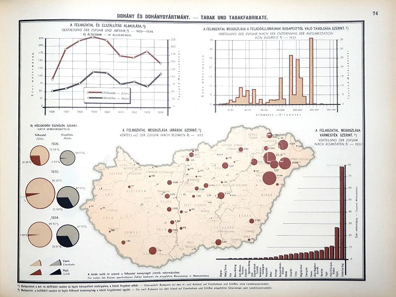 Budapest, (1935). Budapest Székesfőváros Statisztikai Hivatala (ny.) X + [2] p. + 150 t. (100 színes). Haránt alakú kötet. Folio. Egyetlen kiadás.