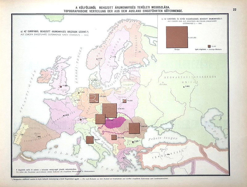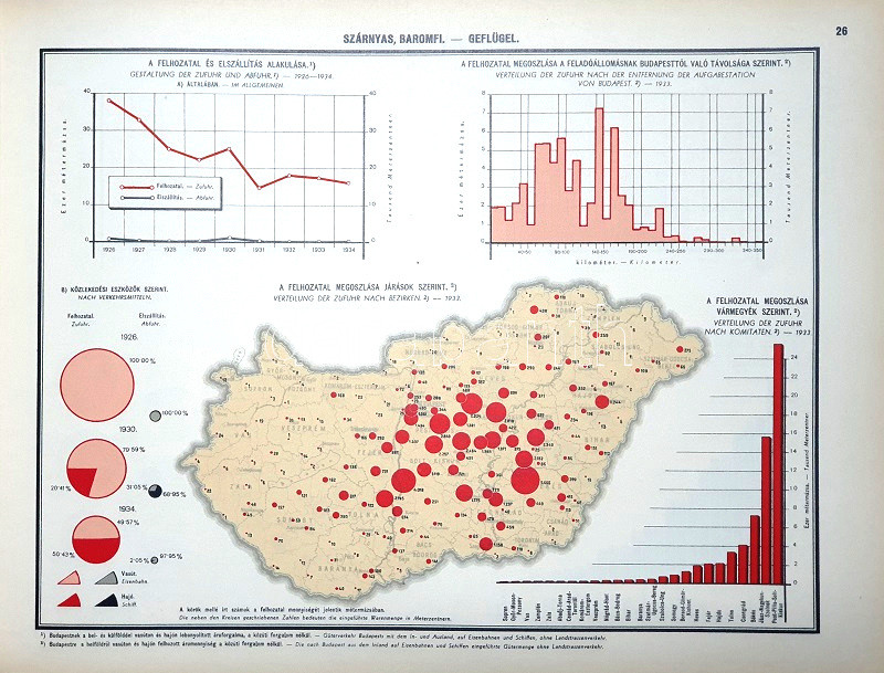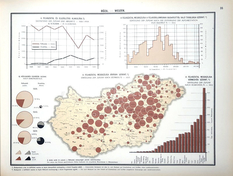 Illyefalvi Imre Lajos (1881-1944) statisztikus, kormány-főtanácsos, egyetemi tanár, Budapest statisztikai hivatalának vezetője. Páratlanul érdekes, magyar-német nyelvű munkája az ország legfőbb fogyasztója: a főváros behozatalának teljes keresztmetszetét kívánja adni. A kötet legtöbb színes ábrája országtérképet is közöl, hiszen vizsgálódásának fő tárgya az, hogy Budapest az ország mely megyéiből, azon belül pedig mely járásaiból szerzi be mezőgazdasági, ipari és egyéb terményeit, termékeit és készáruit. A kötetből megtudhatjuk például, hogy a főváros búzát, disznót és szarvasmarhát az Alföldről, halat és rákot túlnyomóan a Dunántúlról, tejet és tejfölt a Duna menti megyékből, káposztát a Kisalföldről, tököt Hevesből és Szabolcsból hoz be; faggyút, vajat és margarint Nyugat-Magyarországról és a Dél-Dunántúlról szerez; Budapest népe elsősorban alföldi bort iszik (tradicionális borvidékeink elhanyagolható mértékben szállítanak a fővárosnak), továbbá Pest megyei és szabolcsi pálinkán él, ásványvízből pedig Pest megyei és nagyigmándi vizet fogyaszt. Dohányáru tekintetében zempléni, szabolcsi, hajdúsági, baranyai és Fejér megyei behozatalra szorul, vas- és acéláruit Borsodból és Nógrádból szerzi be, gépgyártásban viszont Győrt, Várpalotát, Egert leszámítva önellátó. A kötet elején külföldi behozatali partnereink is feltűnnek, ez ábra szerint elsődleges beszállítónk Csehszlovákia, Románia és Ausztria, csak ezt követi Németország és Olaszország, a jugoszláv és lengyel behozatal pedig kimondottan elhanyagolható.