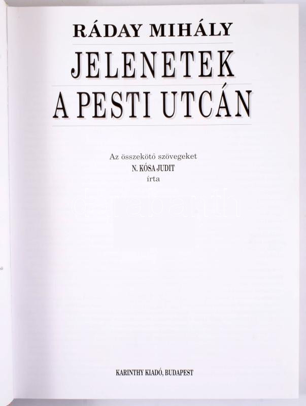 Ráday Mihály: Jelentek a pesti utcán. N. Kósa Judit írásaival. Szerk.: Gáspár Zsuzsa és N. Kósa Judit. Bp., 1998, Karinthy Kiadó. Gazdag képanyaggal illusztrált. Kiadói kartonált papírkötés, kiadói papír védőborítóban.
