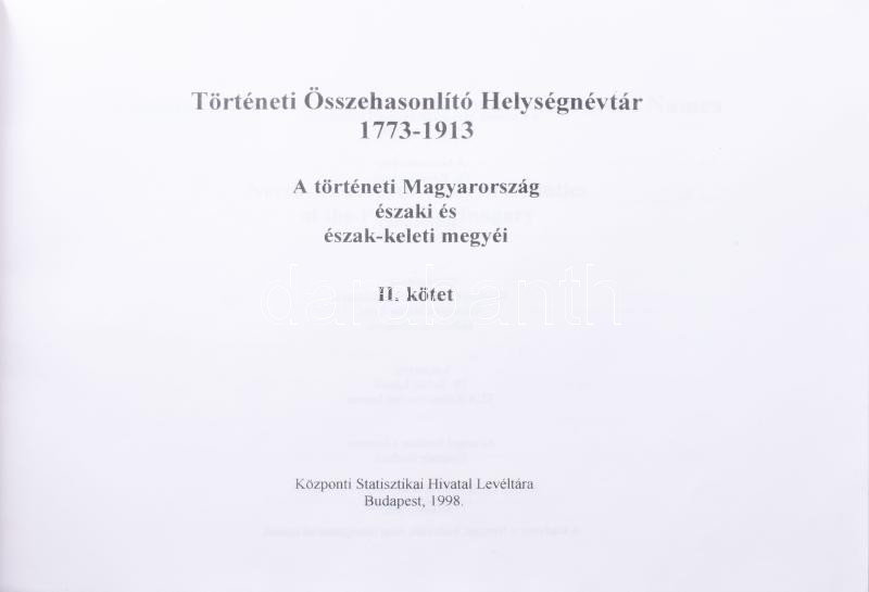 Történeti összehasonlító helységnévtár 1773-1913. A történeti Magyarország északi és észak-keleti megyéi. I-II. köt. Szerk.: Jeney Andrásné. Bp., 1998, Központi Statisztikai Hivatal Levéltára. Kiadói papírkötés, kissé kopottas borítóval.