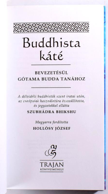 4 db Buddhizmussal kapcsolatos könyv: Szubhádra Bhikshu: Buddhista káté. Bevezetésül Gótama Buddha tanához.; Ani Csöjing Drolma: A szabadságért szól a hangom.; Gánti Bence: A buddhizmus lélektana, spiritualitása, irányzatai.; William Hart: Az élet művészete. Vipasszaná meditáció S. N. Goenka tanítása alapján. Kiadói papírkötés / kartonált papírkötés.