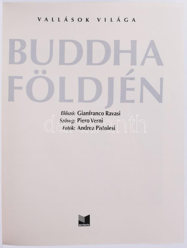 Piero Verni - Andrea Pistolesi: Buddha földjén. Ford.: Zöldi Mihály. Vallások világa. Bp., 2003, Merhavia, 224 p. Gazdag képanyaggal illusztrálva. Kiadói egészvászon-kötés, kiadói papír védőborítóban.
