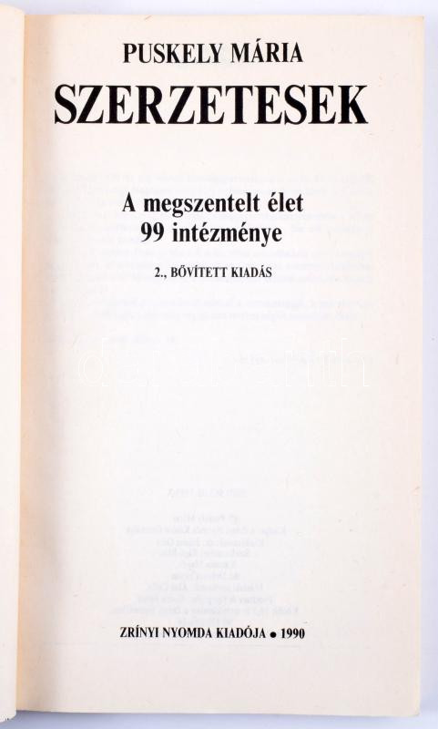 Puskely Mária: Szerzetesek. A megszentelt élet 99 intézménye. H.n., 1990, Zrínyi Nyomda Kiadója. Kiadói papírkötés.
