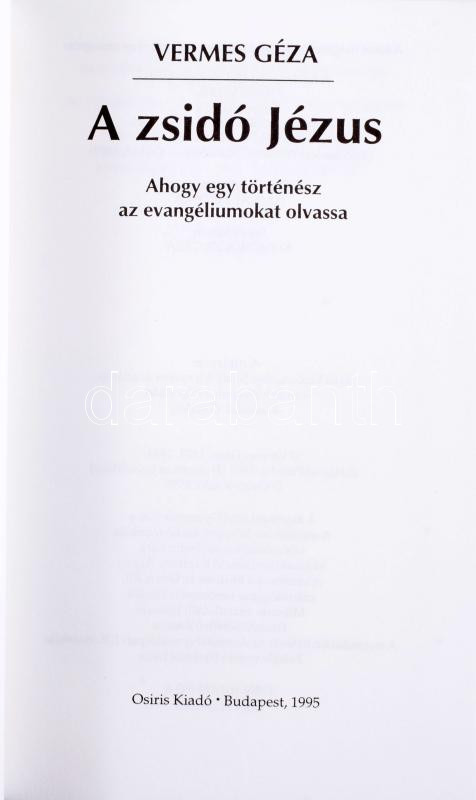 Vermes Géza: A zsidó Jézus. Ahogy egy történész az evangéliumot olvassa. Bp., 1995, Osiris. Kiadói papírkötés, jó állapotban.
