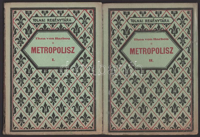 Harbou, Thea von: Metropolisz I-II. Bp., Tolnai. 127p.+ 127p. Kiadói papÃrkötés, szép állapotban. Egy lapon apró szakadás.