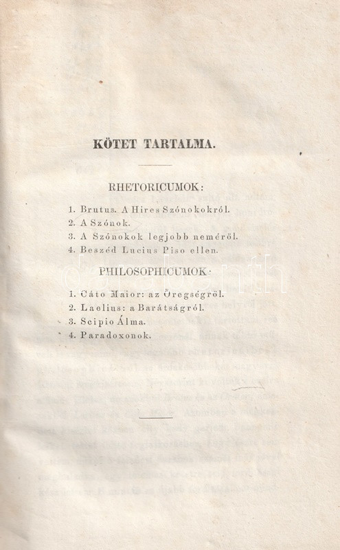 Cicero vegyes munkái. Rhetoricumok és philosophicumok. Fordította, bevezetésekkel, jegyzetekkel kísérte Fábián Gábor. I. kötet. [Unicus, több nem jelent meg.]
