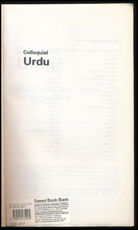 Tej K. Bhatia - Ashok Koul: Colloquial Urdu. The complete course of Beginners. London - New York,2000,Routledge. Kiadói papírkötés, kissé kopott borítóval.