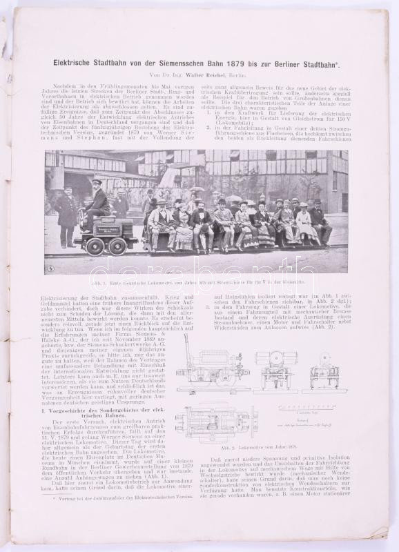 Eletrische Stadtbahn von der Siemensschen Bahn 1879 bis zur Berliner Stadtbahn. von Dr. Ing. Walter Reichel, Berlin. 32p. (Villamosok képes története)