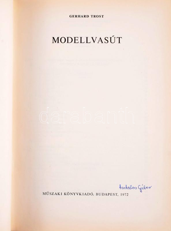 Gerhard Trost: Modellvasút. Fordította: Vörös Iván. Bp., 1972, Műszaki. Kiadói kartonált papírkötés.