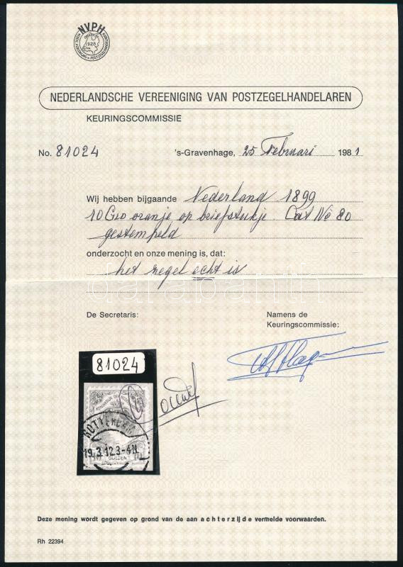 Hollandia 1898/1905 10 Gulden Mi 66 A centrált hibátlan ritkaság! Luxus darab! (Mi EUR 700.-) Certificate: NVPH
