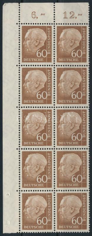NSZK 1954/1961 Theodor Heuss függőleges tízestömb Mi 190