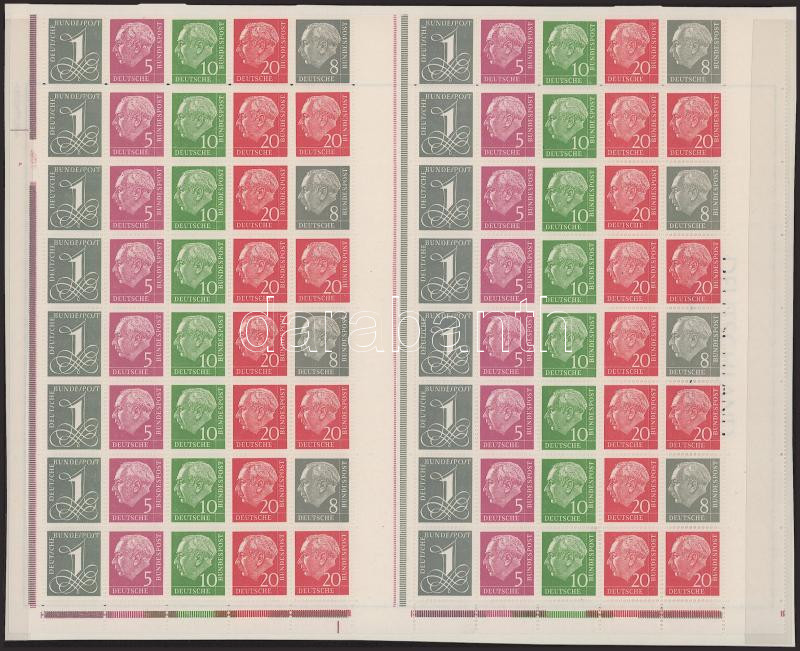 NSZK 1958 Heuss Mi 8Y 8 füzetlapot tartalmazó füzetív összefüggés fekvő vízjellel (Mi EUR min 680.-)