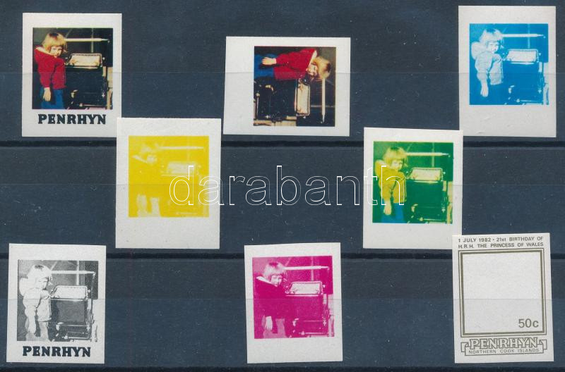 Penrhyn 1982 Lady Diana születésének 21. évfordulója Mi 265 50c bélyeg 8 különféle fogazatlan fázisnyomata