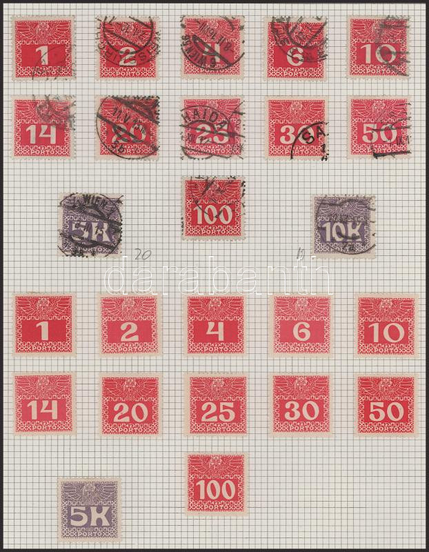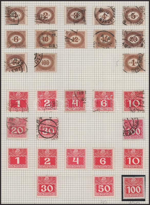Ausztria portó gyűjtemény az elejétől 1945-ig típusokra lebontva, kevés hiánnyal, 16 db albumlapon (Osztrák katalógus alapján kb. 2.200,- EUR)