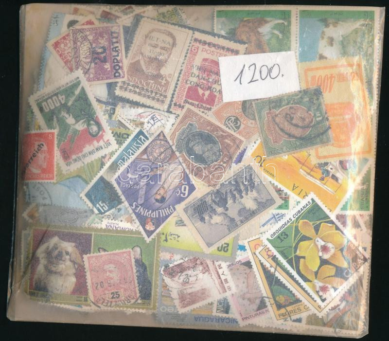 1.200 db vegyes külföldi bélyeg ömlesztve tasakban