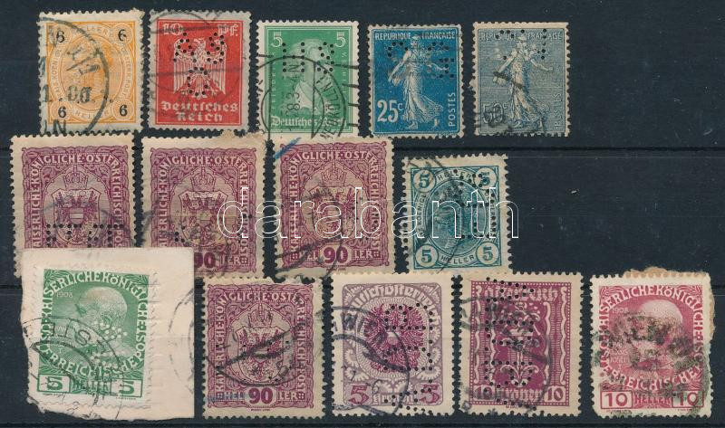 14 db régi céglyukasztásos francia, német illetve osztrák bélyeg