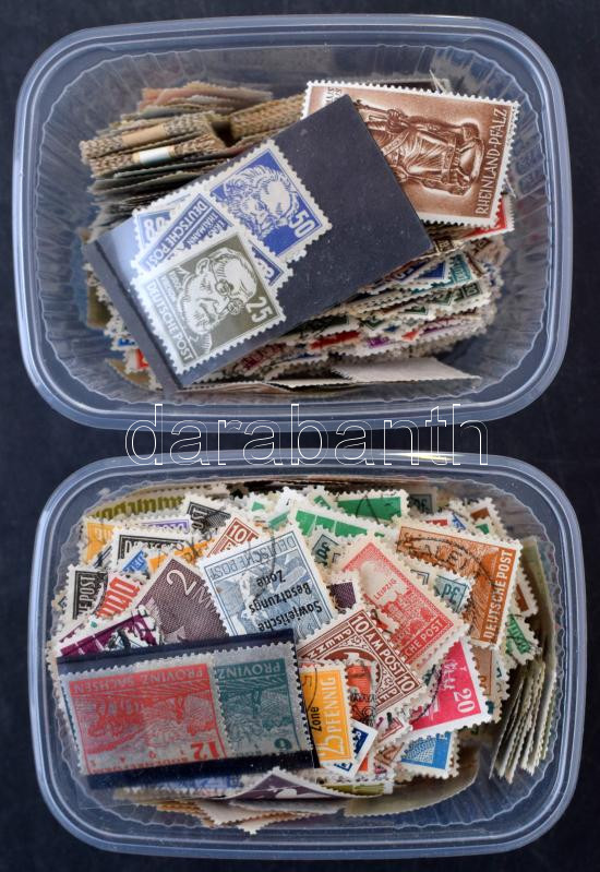 1945-1949 Kb. 2.000 db német bélyeg kis dobozokban ömlesztve, köztük néhány 1953-as Híres emberek bélyeg
