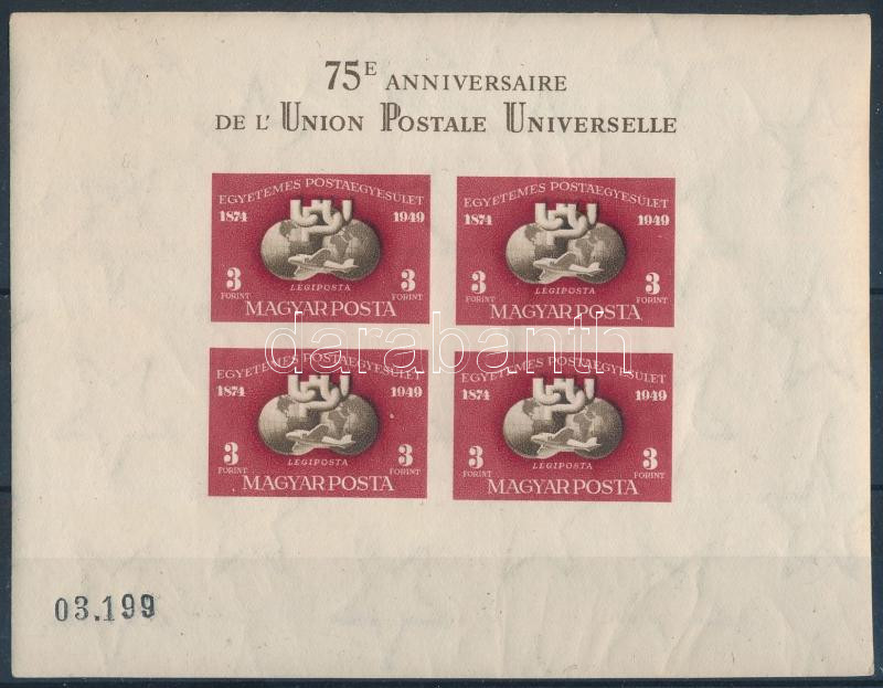 1950 UPU vágott blokk (220.000) (ráncok / creases)