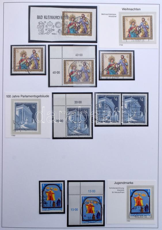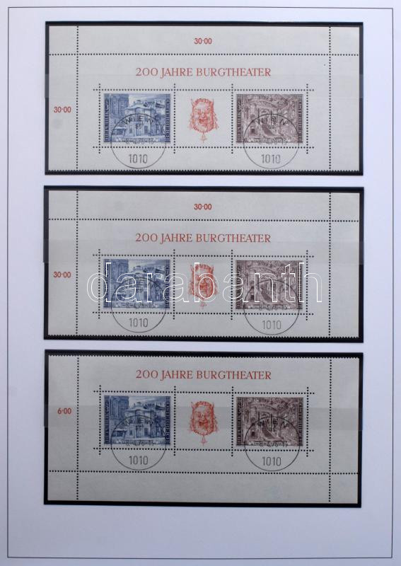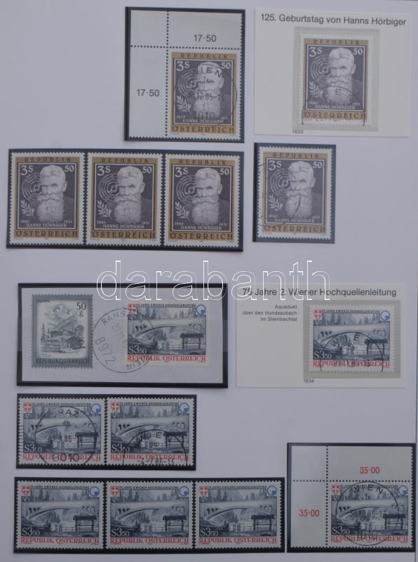 Ausztria 1974-1985 Több példányos főleg bélyegzett luxus gyűjtemény szép bélyegzésekkel közte blokkok, köznapi levelek és néhány FDC albumlapokon 2 db barna csavaros albumban, tokokkal