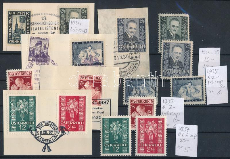 Ausztria kis összeállítás stecklapon, közte első napi bélyegzések is (ca. Mi EUR 143,-)