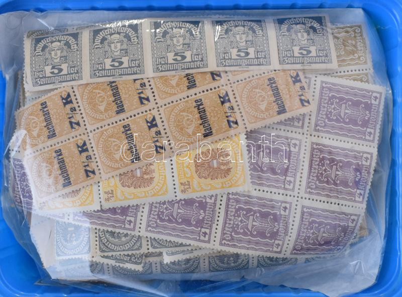 Ausztria néhány ezer 1945 előtti bélyeg ívdarabokkal, fagyis dobozban