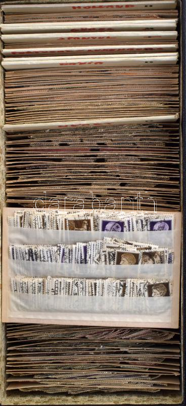 Kereskedői rendező 1870-1945 Olasz, angol, német, dán, spanyol, görög, holland kb 10.000 bélyeg