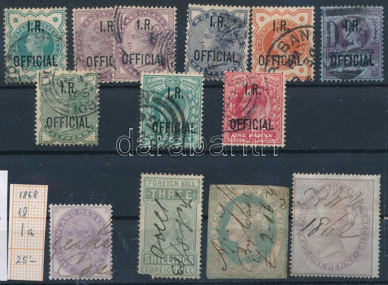 Nagy-Britannia 13 db régi bélyeg és illetékbélyeg stecklapon