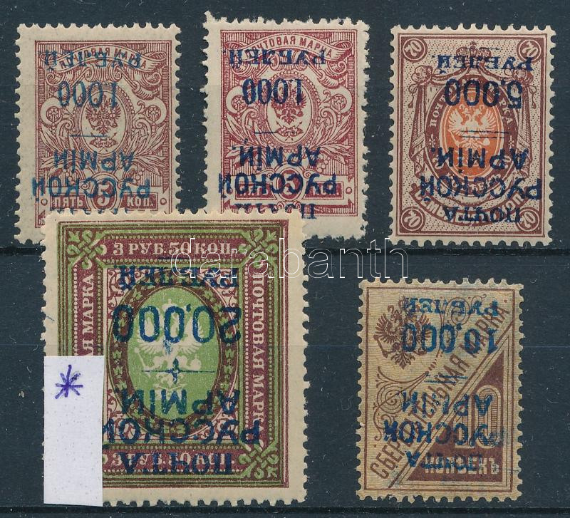 Oroszország 5 klf fordított felülnyomatú bélyeg garancia nélkül / no guarantee, a falcos bélyegen kis szakadás / tear
